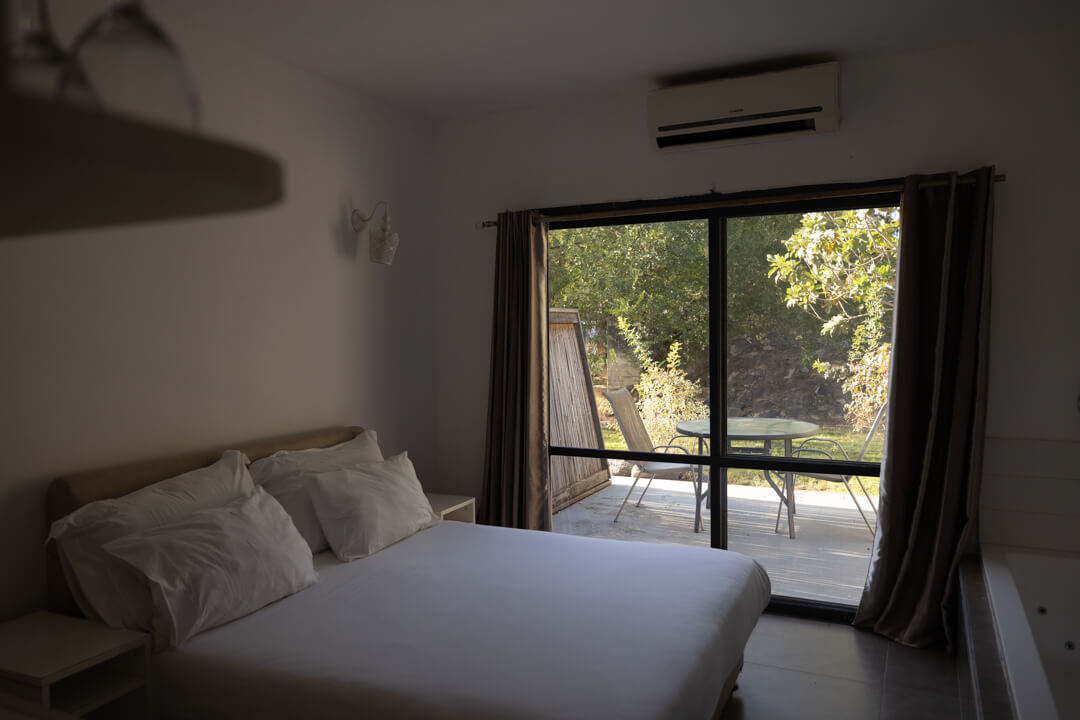 היחידה בנויה מחדר בו יש מיטה זוגית, טלוויזיה המחוברת לערוצי לוויין וג'קוזי אמבטיה. בכניסה ליחידה יש חדר רחצה ושירותים. לחדר יציאה למרפסת עם ריהוט גן.